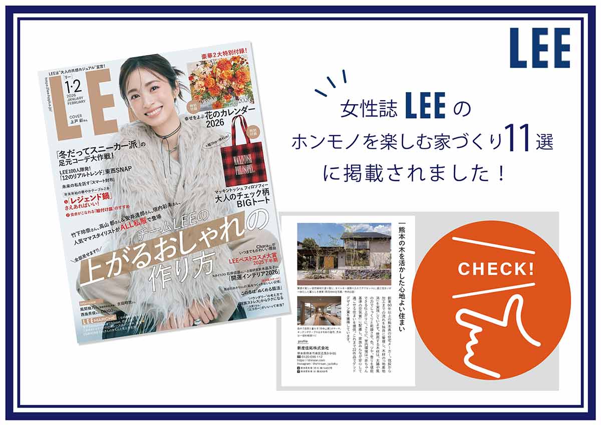 この度、新産住拓のモデルハウスが、女性ファッション誌「LEE」2026年1月号(2025年12月5日発売)の住宅特集「ホンモノを楽しむ家づくり 11選」に掲載されました!